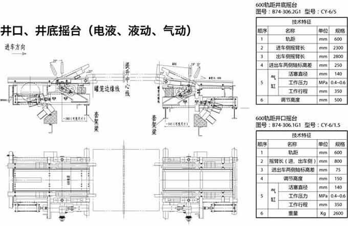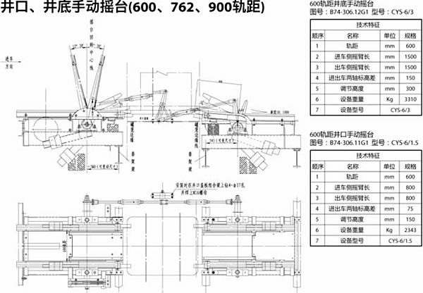 搖臺為一段可擺動軌道,一端繞固定軸擺動,另一端當罐籠停好后搖尖搭接在罐籠邊緣的導軌襯上, 搖臺邊接了罐內與車場中的軌道, 搖臺便于礦車進出罐籠。當搖臺抬起時, 搖臺上***突出部的外形與罐籠間留有足夠的安全間隙。搖尖的前端,工作時與罐內導軌襯搭接,搖尖鉸接在搖臂上,可以自由轉動一定的角度,搖尖的尾部設有配重,使其前部經常處于抬起狀態。當由于事故搖臺放下后,罐籠通過時,搖尖頭部被撞向下旋轉,而允許罐籠安全通過。搖尖和導軌襯的結構保證了搖臺與罐籠搭接時,側向能可靠定位,從而罐籠內外軌道不會錯位,免發生礦車掉道事故。